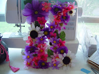 I started, as usual, with gathering my supplies. They included silk flowers in different colors and sizes, the regular glue gun and a "good sized" MDF letter. (Pics 1-3)